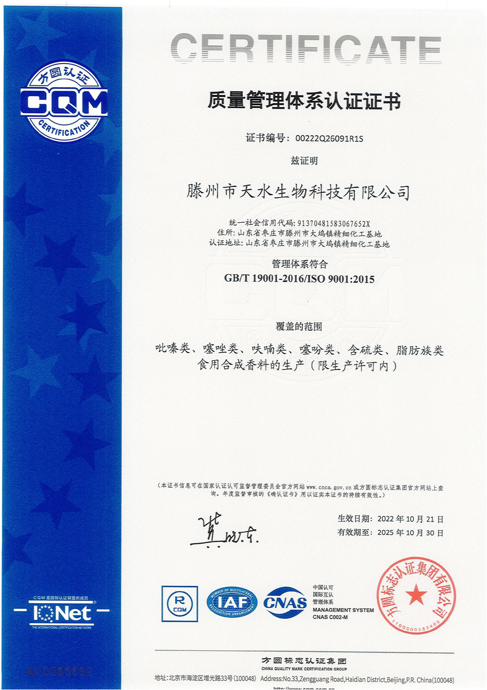滕州市天水生物科技有限公司成立于2011年9月,是目前國內(nèi)雜環(huán)類合成食品香料、日化香料和醫(yī)藥中間體生產(chǎn)經(jīng)營的綜合性企業(yè)。坐落于山東省滕州市生物醫(yī)藥產(chǎn)業(yè)基地,總投資5000余萬元,占地面積約30000平方米,員工百余人。公司先后被評為高新技術(shù)企業(yè)、專精特新中小企業(yè)、科技型中小企業(yè),建有市級重點(diǎn)實(shí)驗(yàn)室1處,并先后獲得ISO9001質(zhì)量體系認(rèn)證、ISO22000食品安全體系認(rèn)證、kosher認(rèn)證和Halal認(rèn)證。是香精香料及食品配料協(xié)會會員單位及滕州市中小企業(yè)協(xié)會理事單位。